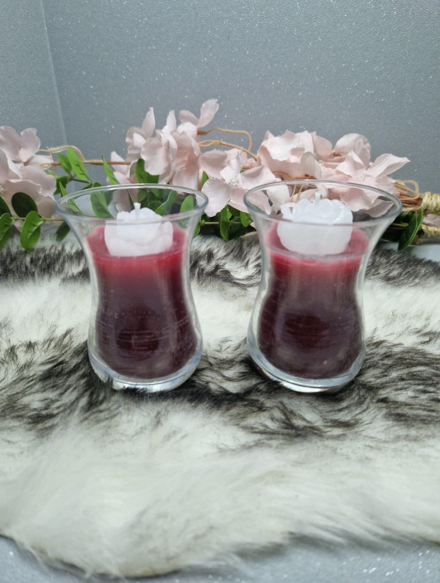dit theegaalsje is gevuld met normale kaarsenwas en als topping een leuk bloemetje. leuk voor een klein decoratie in uw woning
